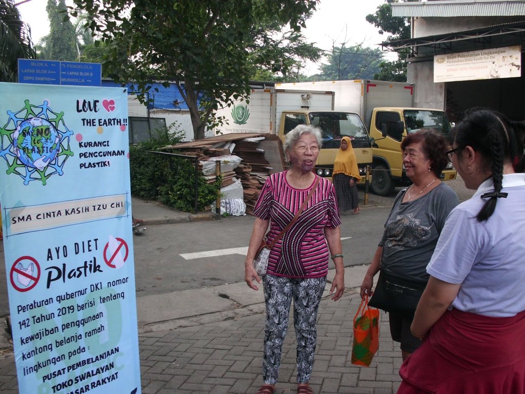 Pada 11 Maret 2020 lalu, OSIS SMA Cinta Kasih Tzu Chi melaksanakan kegiatan sosialisasi diet plastik. Kegiatan ini dilakukan di beberapa titik, antara lain : di depan pintu gerbang perumahan Cinta Kasih, di dalam Pasar Bersih, dan di depan pintu kecil pasar pagi Rusun BCI.